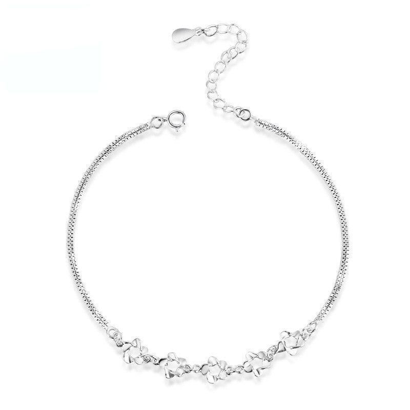 Silver floral anklet