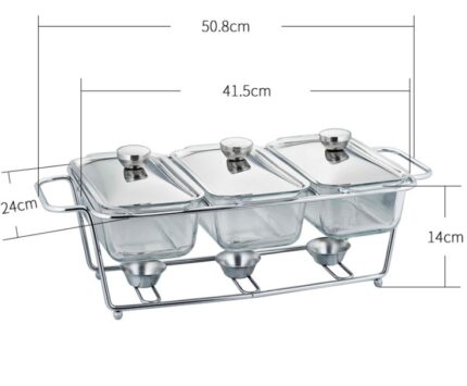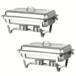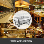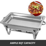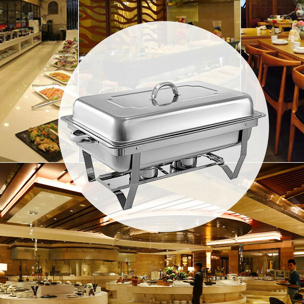 Dieses rechteckige Chafing-Dish-Set verfügt über einen robusten Edelstahlrahmen für lange Haltbarkeit. Mit einem Fassungsvermögen von 8 l bietet es ausreichend Platz für große Mengen an Speisen. Im Lieferumfang sind Speiseschale, Wasserschale, Brennstoffbehälter usw. enthalten, sodass Sie alles haben, was Sie für den sofortigen Einsatz Ihres Chafing Dishes benötigen. Dank des einzigartigen faltbaren Designs lässt sich der Chafing Dish stapeln, verpacken und leicht transportieren. Er eignet sich ideal für Buffets, Frühstücksbereiche in Hotels, Partys und Selbstbedienungsbereiche usw.