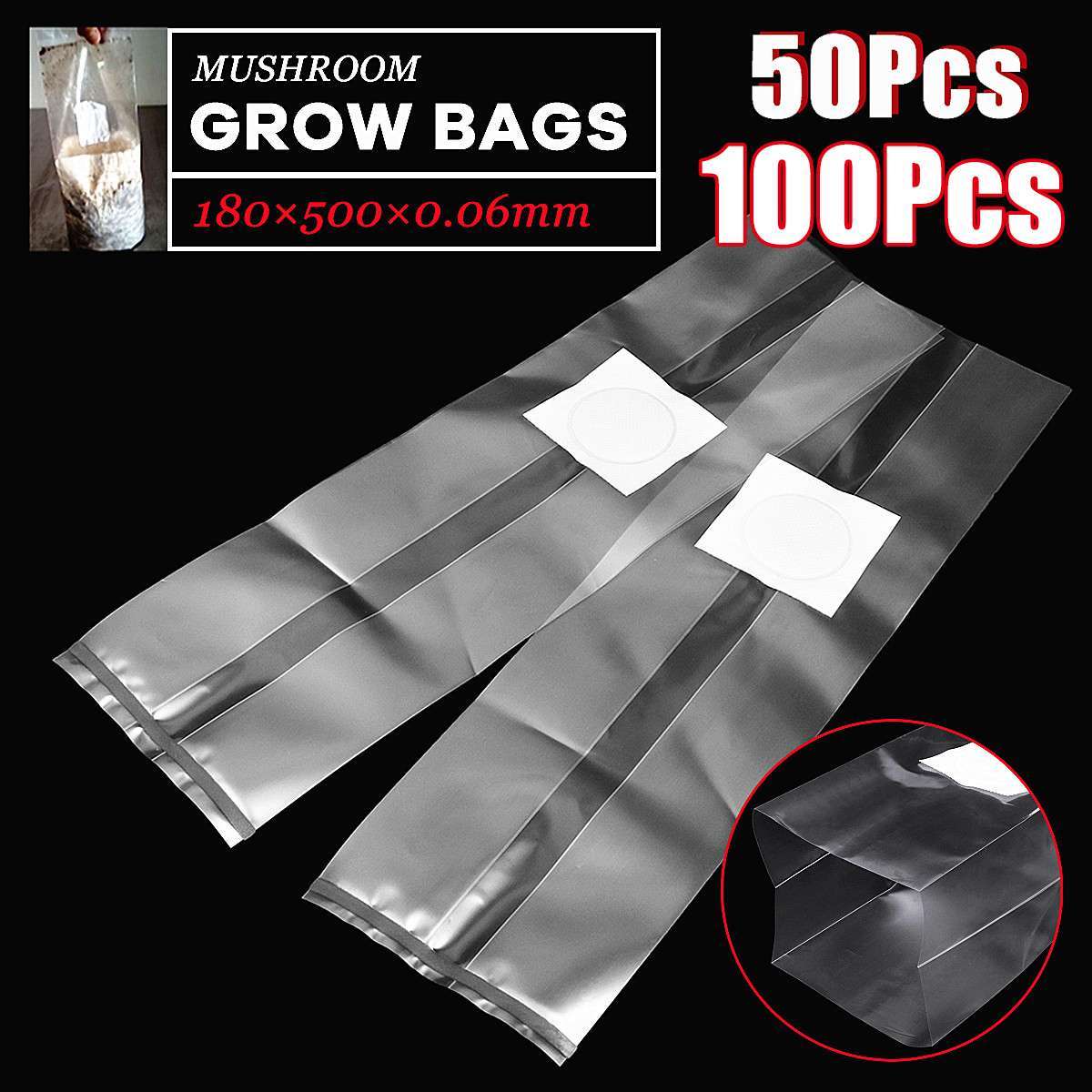 Name: 50 Stück 180 x 500 x 0,06 mm PVC-Pilzezuchtbeutel, vorversiegeltes Hochtemperatursubstrat
