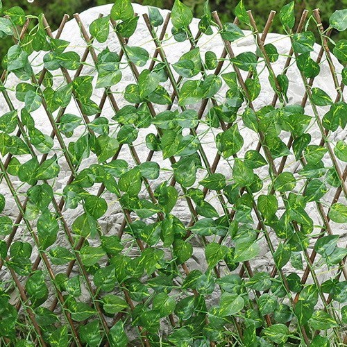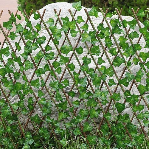Material: Der Zaun besteht aus Massivholz mit künstlichem grünem Rattan.