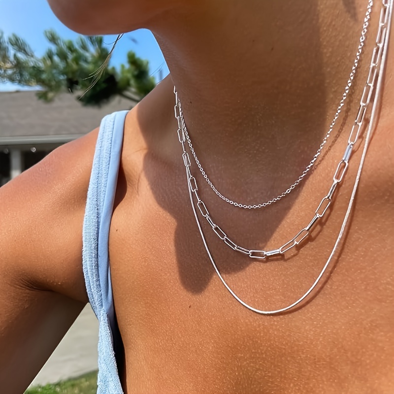 Geschichtetes Design: Drei zarte Ketten, die übereinander gelegt sind, um einen raffinierten und eleganten Look zu kreieren.