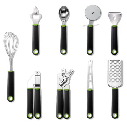 Kreative Küchenutensilien aus Edelstahl mit Kunststoffgriff